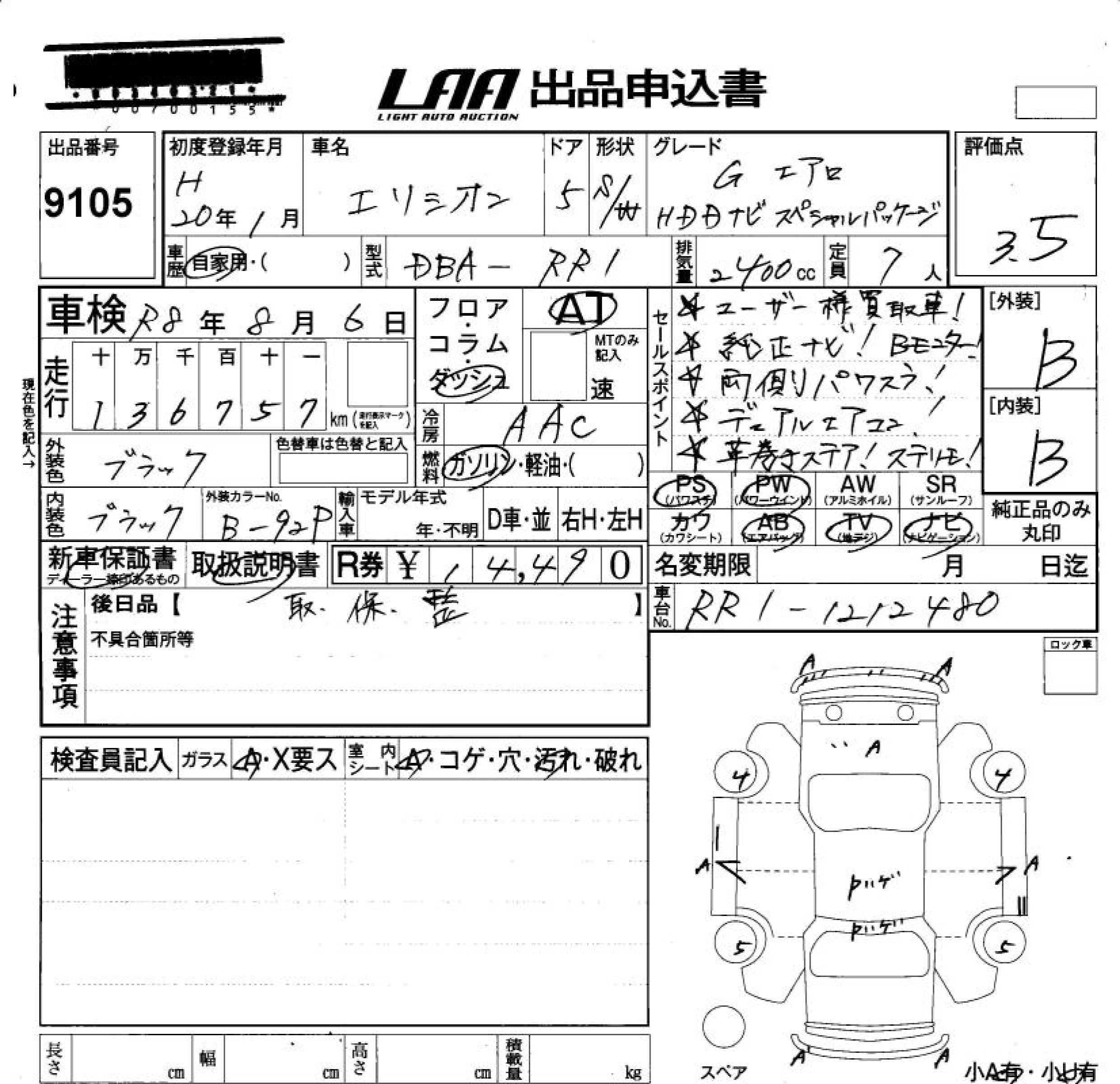 | LX HDD NAVI SPECIAL PACKAGE | DBA-RR1 | K24A | FF | 5AT | 2354cc | 160ps(118kW)/5500rpm | AИ-92 | 3 130 000 | |