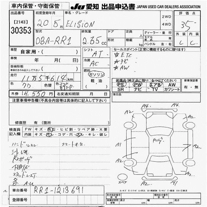 VG AERO HDD NAVI SPECIAL PACKAGE DBA-RR4 J30A Full-time 4WD 5AT 2997cc 250ps(184kW)/6000rpm AИ-95 3 812 000