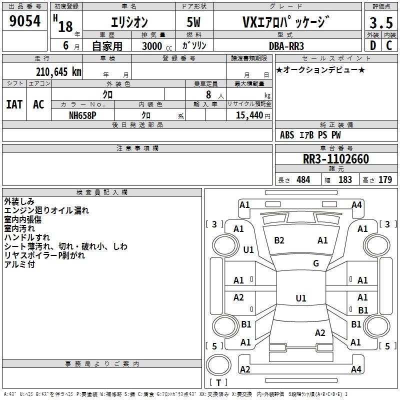 | VG | DBA-RR4 | J30A | Full-time 4WD | 5AT | 2997cc | 250ps(184kW)/6000rpm | AИ-95 | 3 858 000 | |