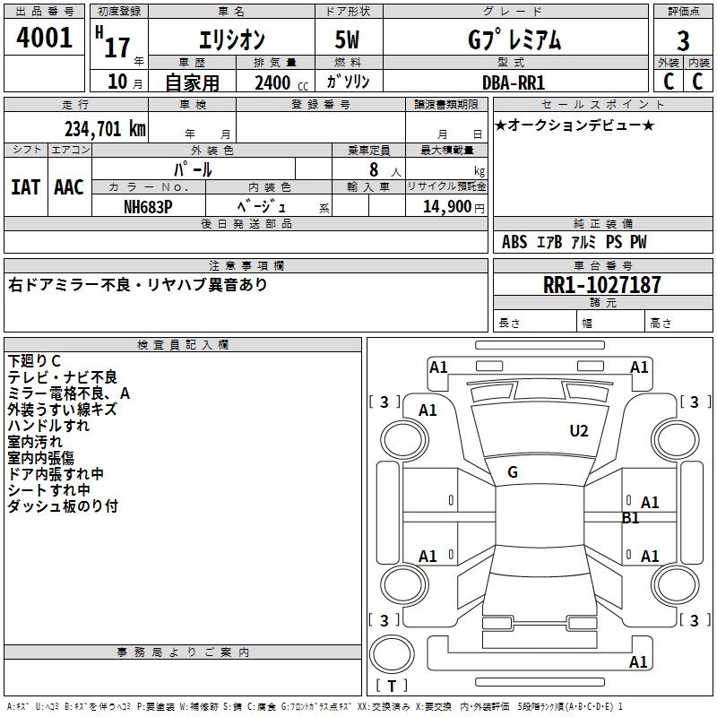 | G | DBA-RR1 | K24A | FF | 5AT | 2354cc | 160ps(118kW)/5500rpm | AИ-92 | 3 128 000 |