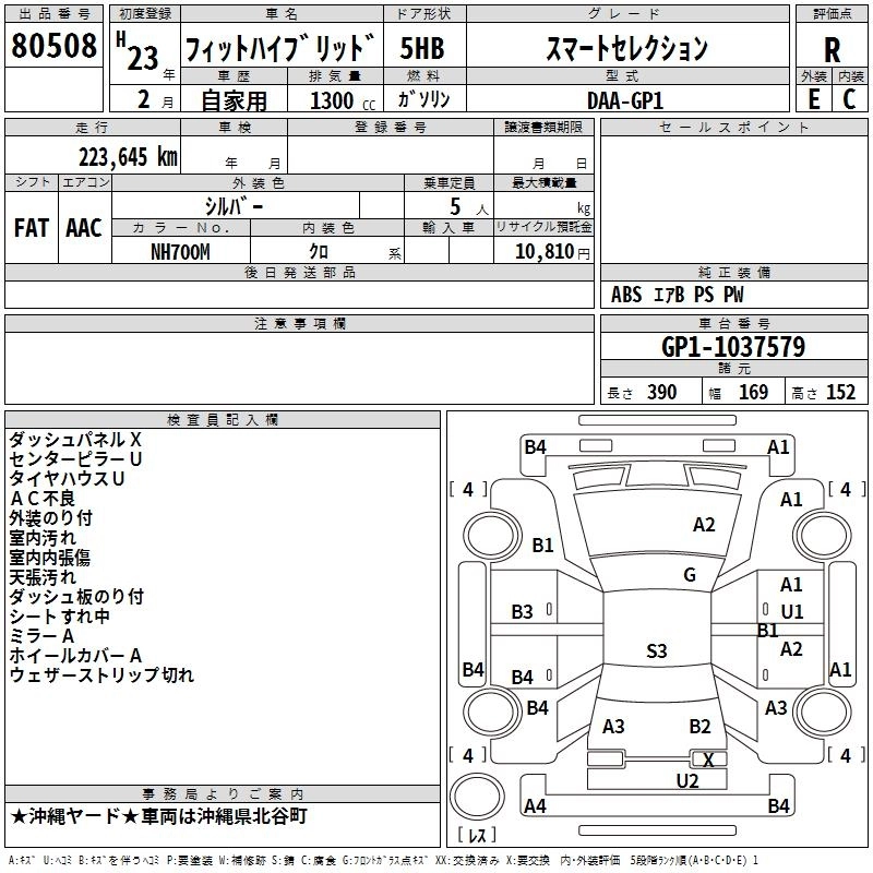 | NAVI PREMIUM SELECTION | DAA-GP1 | LDA | FF | CVT | 1339cc | 88ps(65kW)/5800rpm | AИ-92 | 2 100 000 | |