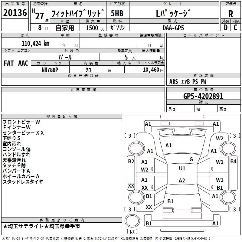 S PACKAGE DAA-GP5 LEB FF 7AT 1496cc 110ps(81kW)/6000rpm AИ-92 2 059 000