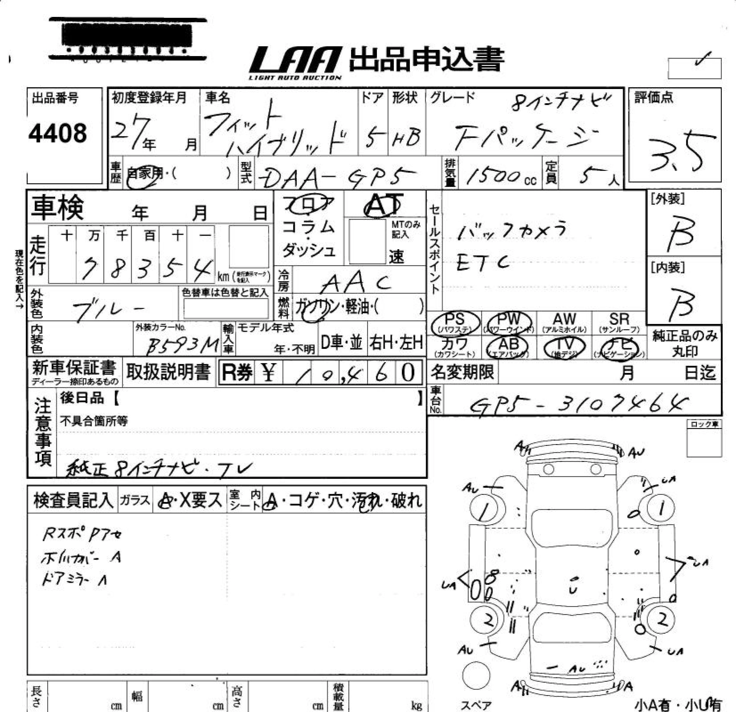 | S PACKAGE | DAA-GP5 | LEB | FF | 7AT | 1496cc | 110ps(81kW)/6000rpm | AИ-92 | 2 059 000 | |