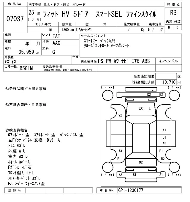 HONDA FIT HYBRID 2013 г., лот № 7037