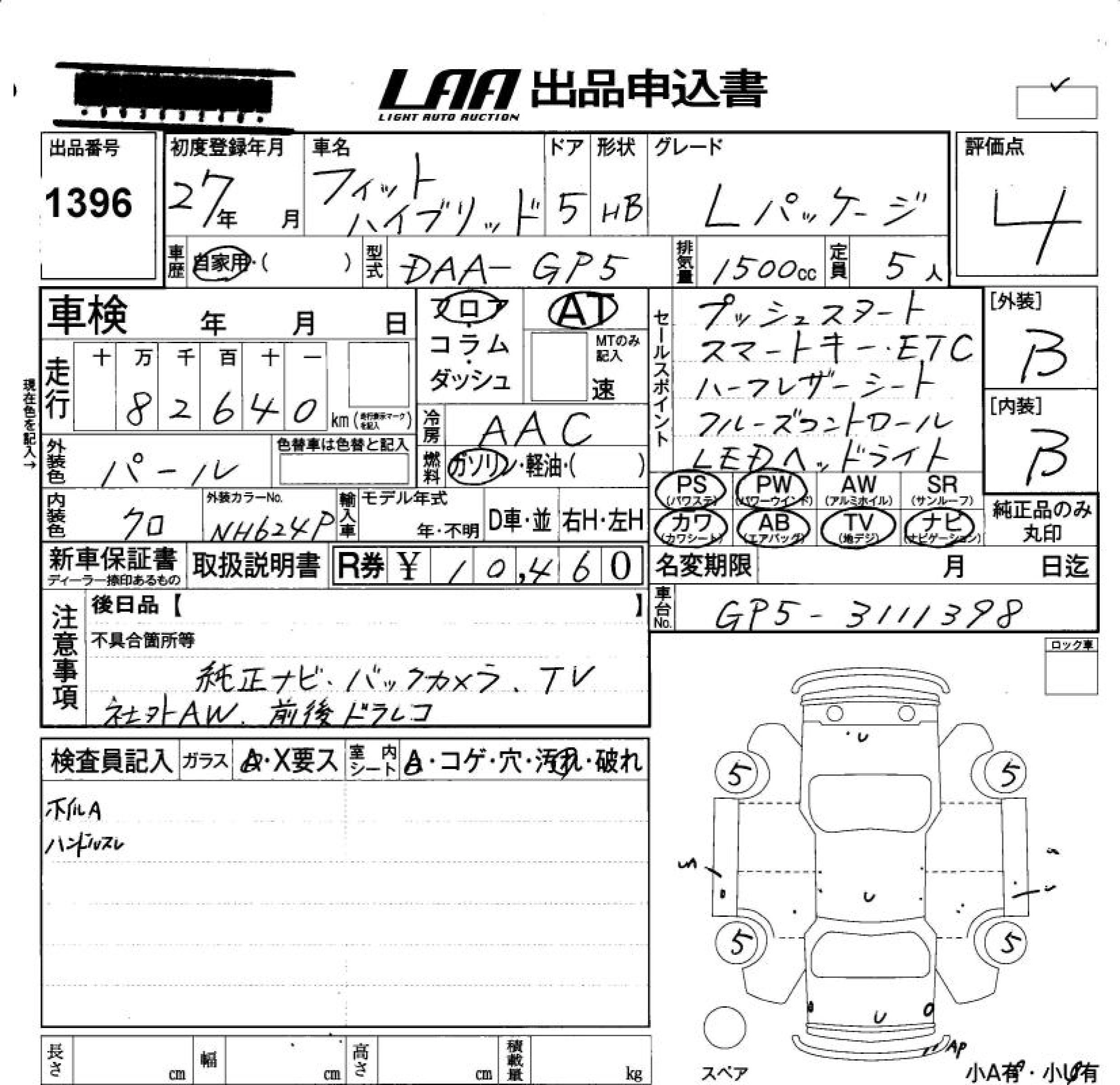 | S PACKAGE | DAA-GP5 | LEB | FF | 7AT | 1496cc | 110ps(81kW)/6000rpm | AИ-92 | 2 059 000 | |