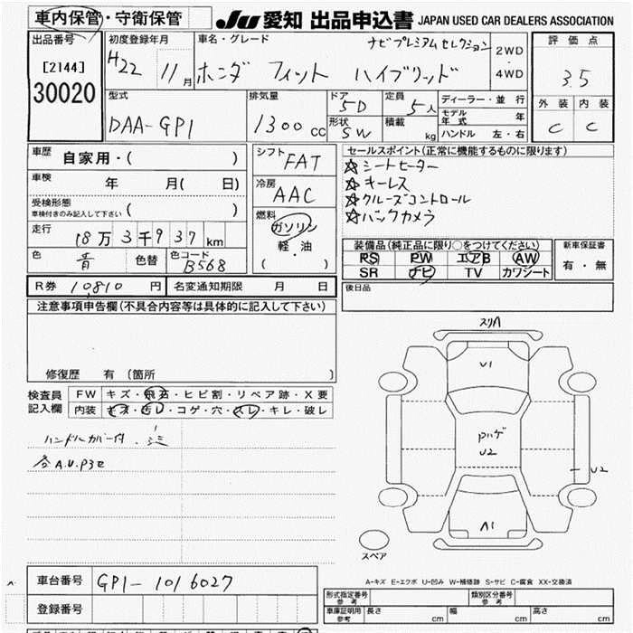 | NAVI PREMIUM SELECTION | DAA-GP1 | LDA | FF | CVT | 1339cc | 88ps(65kW)/5800rpm | AИ-92 | 2 100 000 | |