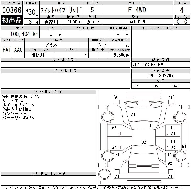 | F COMFORT EDITION | DAA-GP5 | LEB | FF | 7AT | 1496cc | 110ps(81kW)/6000rpm | AИ-92 | 1 847 880 |