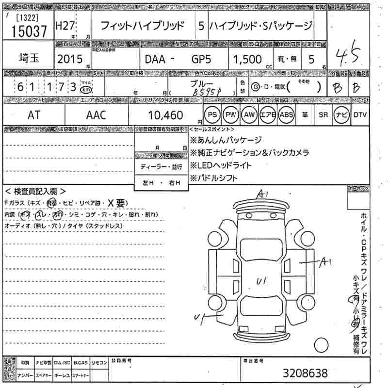 HONDA FIT HYBRID 2015 г., лот № 15037