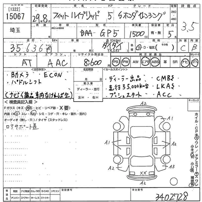 | L HONDA SENSING | DAA-GP5 | LEB | FF | 7AT | 1496cc | 110ps(81kW)/6000rpm | AИ-92 | 2 079 000 | |
