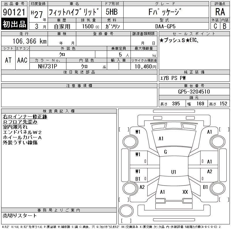 | S PACKAGE | DAA-GP5 | LEB | FF | 7AT | 1496cc | 110ps(81kW)/6000rpm | AИ-92 | 2 059 000 | |