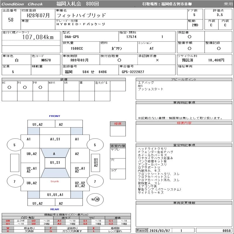 | F PACKAGE COMFORT EDITIO | DAA-GP5 | LEB | FF | 7AT | 1496cc | 110ps(81kW)/6000rpm | AИ-92 | 1 826 000 |