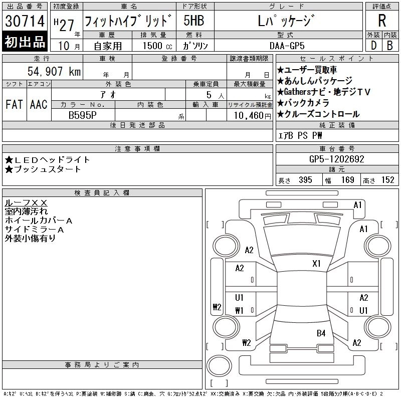 L PACKAGE DAA-GP5 LEB FF 7AT 1496cc 110ps(81kW)/6000rpm AИ-92 1 959 000