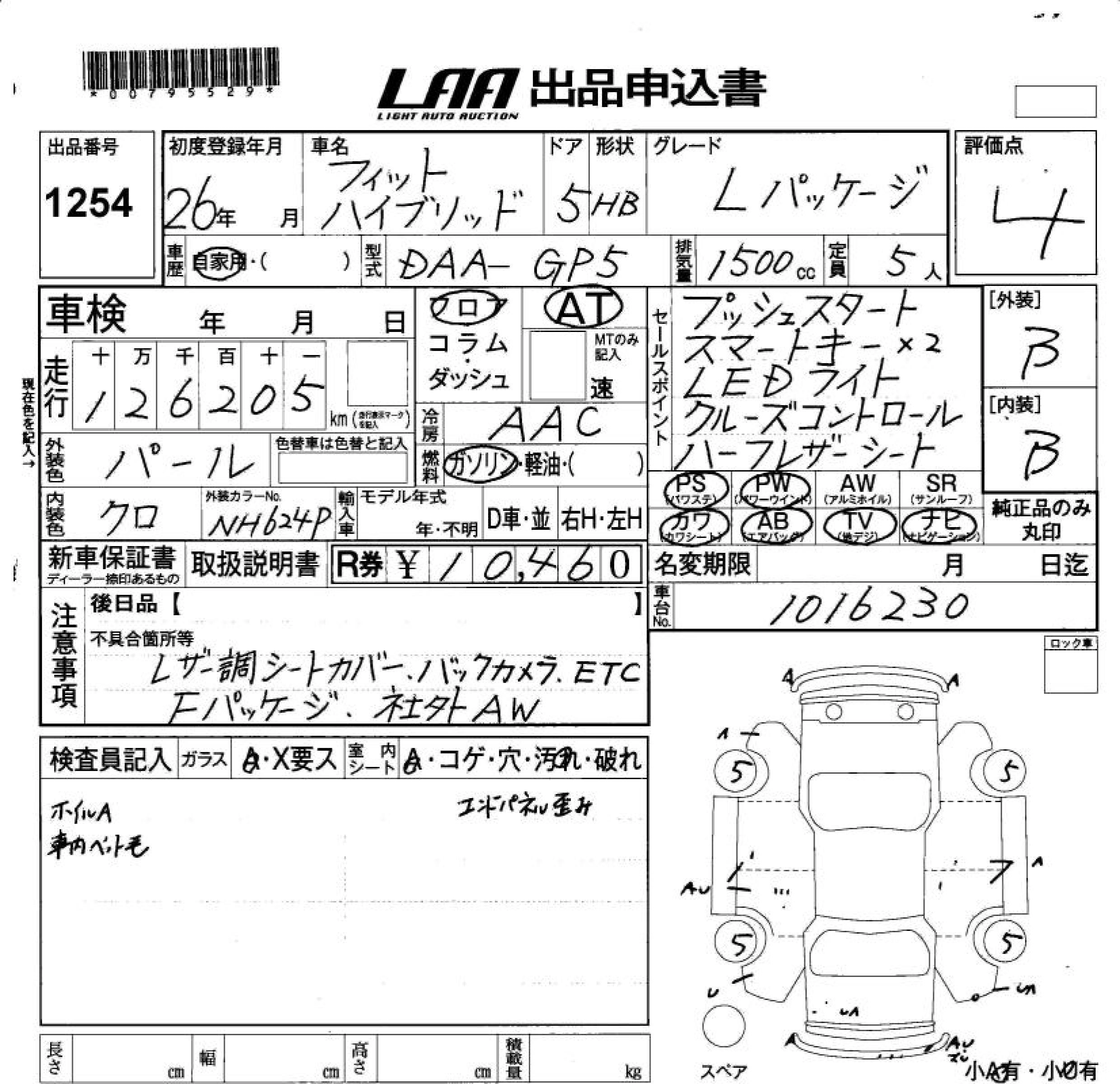 HONDA FIT HYBRID 2014 г., лот № 1254