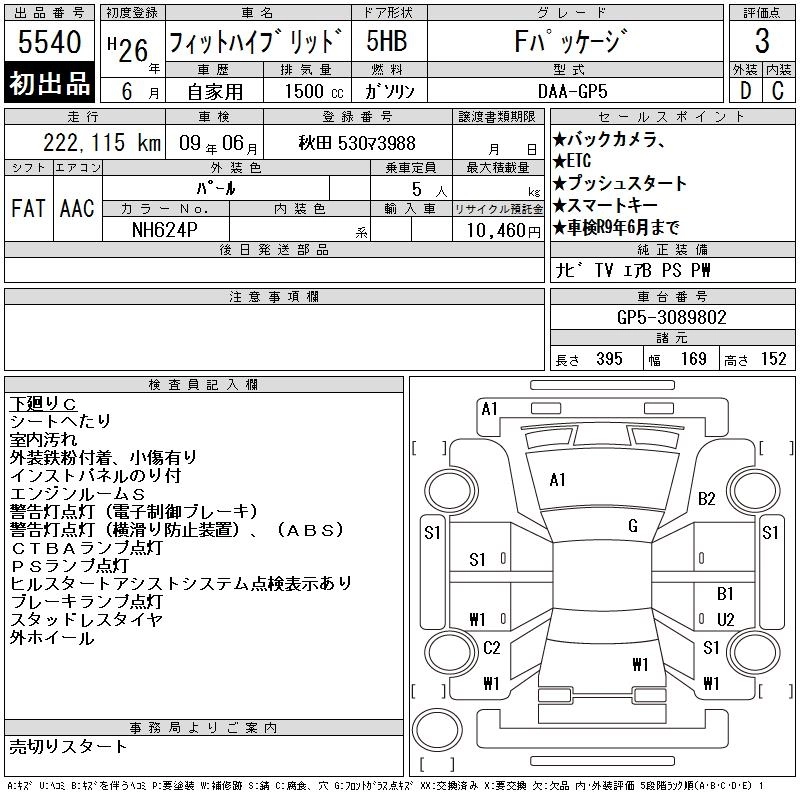 | S PACKAGE | DAA-GP5 | LEB | FF | 7AT | 1496cc | 110ps(81kW)/6000rpm | AИ-92 | 2 059 000 | |