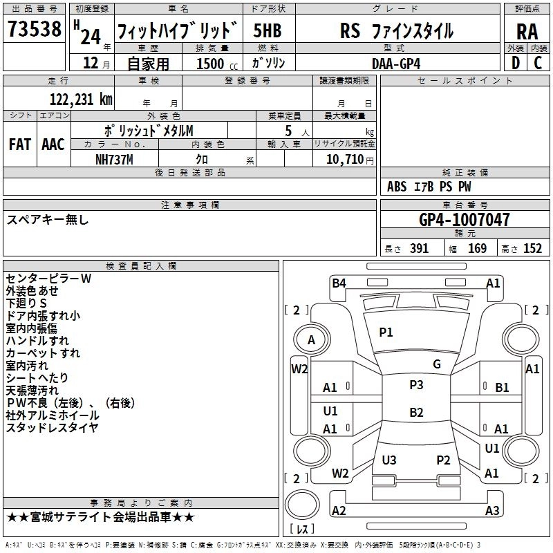 | BASEGRADE | DAA-GP1 | LDA | FF | CVT | 1339cc | 88ps(65kW)/5800rpm | AИ-92 | 1 590 000 |