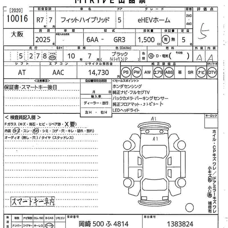 HONDA FIT HYBRID 2025 г., лот № 10016