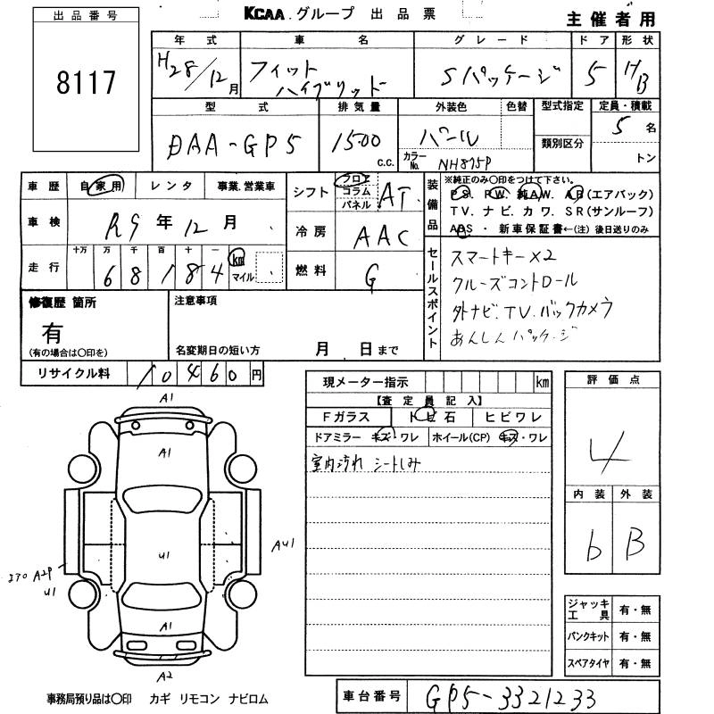 | F PACKAGE COMFORT EDITIO | DAA-GP5 | LEB | FF | 7AT | 1496cc | 110ps(81kW)/6000rpm | AИ-92 | 1 826 000 |