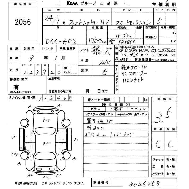 | HYBRID SMART SELECTION FINE LINE | DAA-GP2 | LDA | FF | CVT | 1339cc | 88ps(65kW)/5800rpm | AИ-92 | 1 981 000 | |