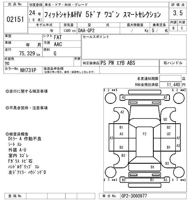 | HYBRID SMART SELECTION | DAA-GP2 | LDA | FF | CVT | 1339cc | 88ps(65kW)/5800rpm | AИ-92 | 1 960 000 | |