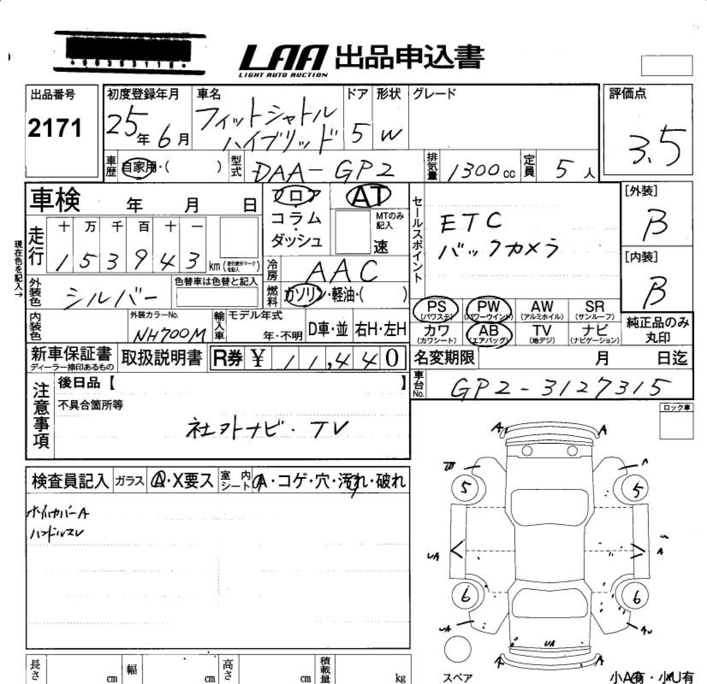 | HYBRID-C | DAA-GP2 | LDA | FF | CVT | 1339cc | 88ps(65kW)/5800rpm | AИ-92 | 1 840 000 |
