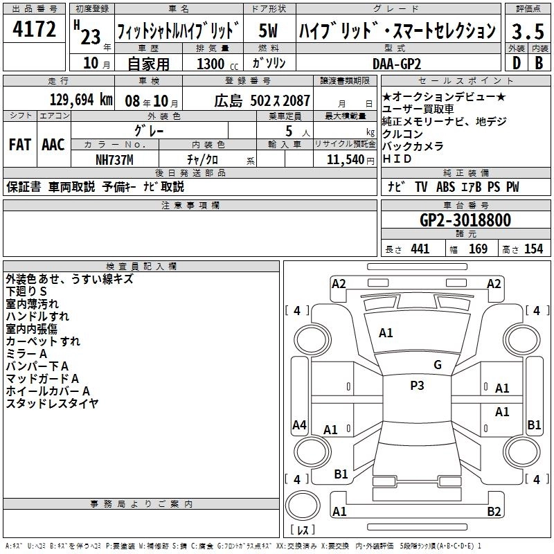 HONDA FIT SHUTTLE HYBRID 2011 г., лот № 4172