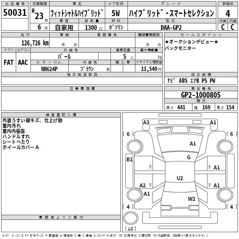 | HYBRID NAVI PREMIUM SELECTION | DAA-GP2 | LDA | FF | CVT | 1339cc | 88ps(65kW)/5800rpm | AИ-92 | 2 330 000 | |