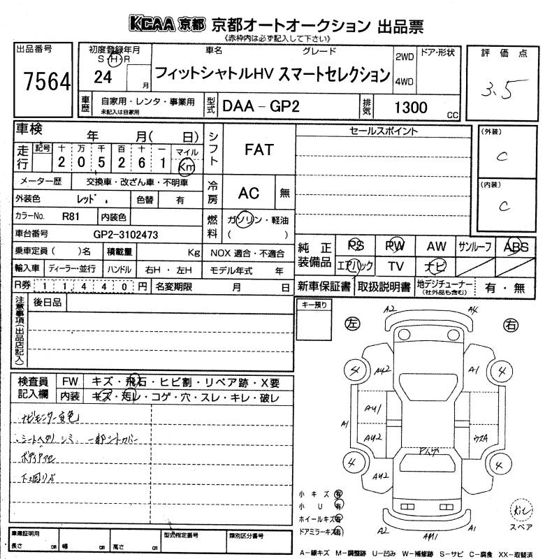 | HYBRID SMART SELECTION | DAA-GP2 | LDA | FF | CVT | 1339cc | 88ps(65kW)/5800rpm | AИ-92 | 1 960 000 | |