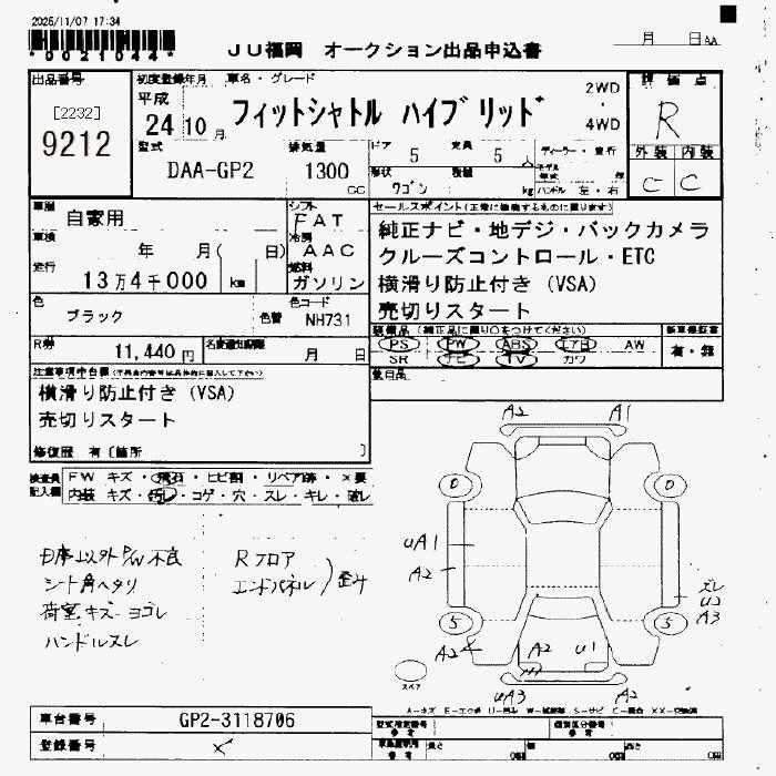 HONDA FIT SHUTTLE 2012 г., лот № 9212