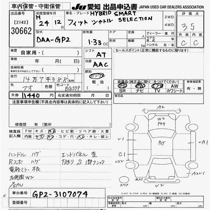 | 15C | DBA-GG7 | L15A | FF | CVT | 1496cc | 120ps(88kW)/6600rpm | AИ-92 | 1 610 000 |