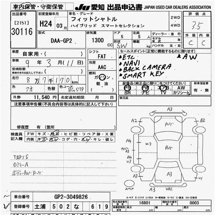 | 15X FINE LINE | DBA-GG7 | L15A | FF | CVT | 1496cc | 120ps(88kW)/6600rpm | AИ-92 | 1 691 000 |