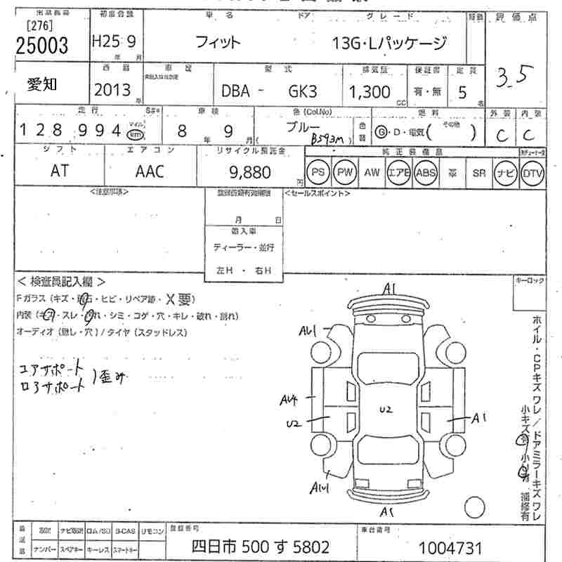 | 13G F PACKAGE | DBA-GK3 | L13B | FF | 5MT | 1317cc | 100ps(73kW)/6000rpm | AИ-92 | 1 360 000 | |