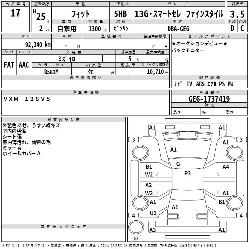 | 13G S PACKAGE | DBA-GK3 | L13B | FF | CVT | 1317cc | 100ps(73kW)/6000rpm | AИ-92 | 1 560 000 | |