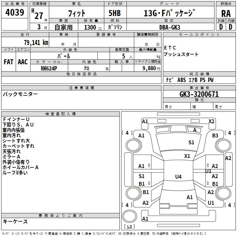| 13G S PACKAGE | DBA-GK3 | L13B | FF | CVT | 1317cc | 100ps(73kW)/6000rpm | AИ-92 | 1 664 000 | |