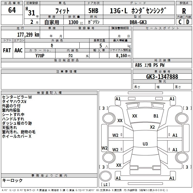 13G F DBA-GK3 L13B FF 5MT 1317cc 100ps(73kW)/6000rpm AИ-92 1 455 300