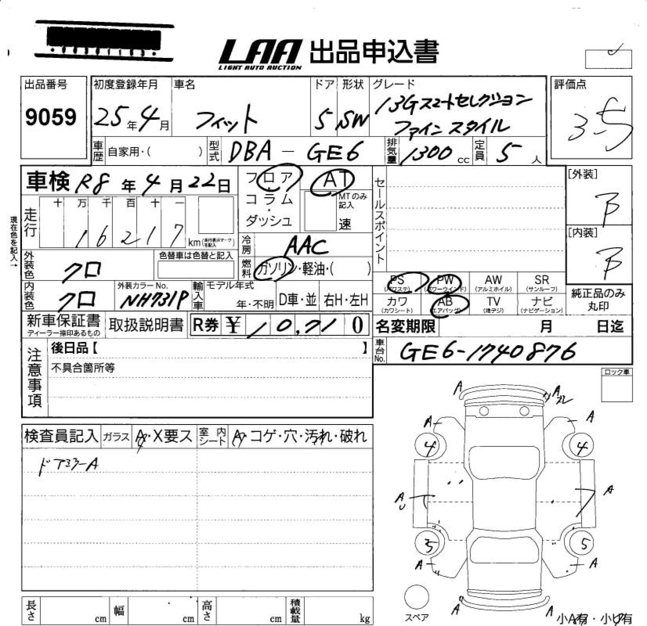 | 13G F PACKAGE | DBA-GK3 | L13B | FF | 5MT | 1317cc | 100ps(73kW)/6000rpm | AИ-92 | 1 360 000 | |