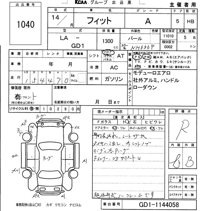 | W | LA-GD1 | L13A | FF | CVT | 1339cc | 86ps(63kW)/5700rpm | AИ-92 | 1 260 000 | |