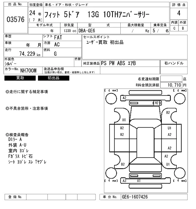 | 13G | DBA-GE6 | L13A | FF | 5MT | 1339cc | 100ps(73kW)/6000rpm | AИ-92 | 1 230 000 |