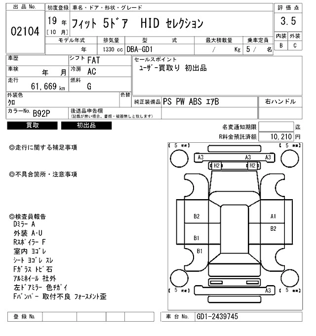 | HID EDITION | DBA-GD1 | L13A | FF | CVT | 1339cc | 86ps(63kW)/5700rpm | AИ-92 | 1 239 000 |
