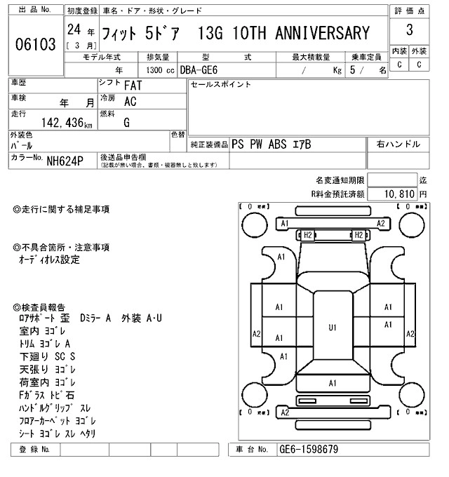 | 13G | DBA-GE6 | L13A | FF | 5MT | 1339cc | 100ps(73kW)/6000rpm | AИ-92 | 1 230 000 |