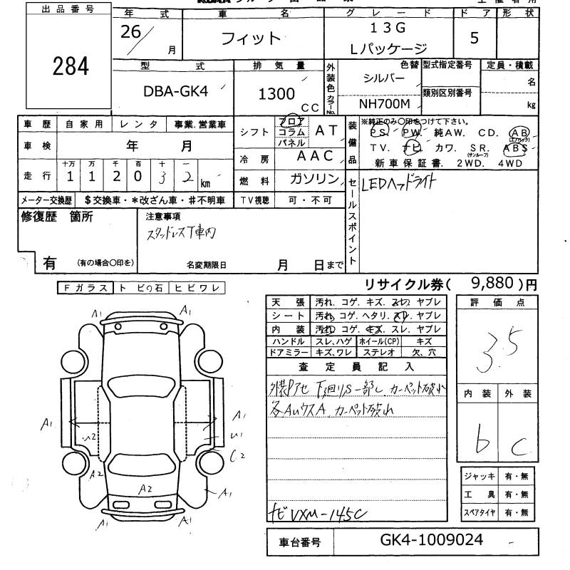 | 13G F PACKAGE | DBA-GK3 | L13B | FF | CVT | 1317cc | 100ps(73kW)/6000rpm | AИ-92 | 1 420 000 | |