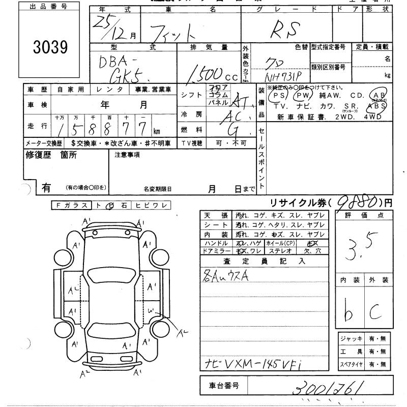 | 13G F PACKAGE | DBA-GK3 | L13B | FF | 5MT | 1317cc | 100ps(73kW)/6000rpm | AИ-92 | 1 360 000 | |