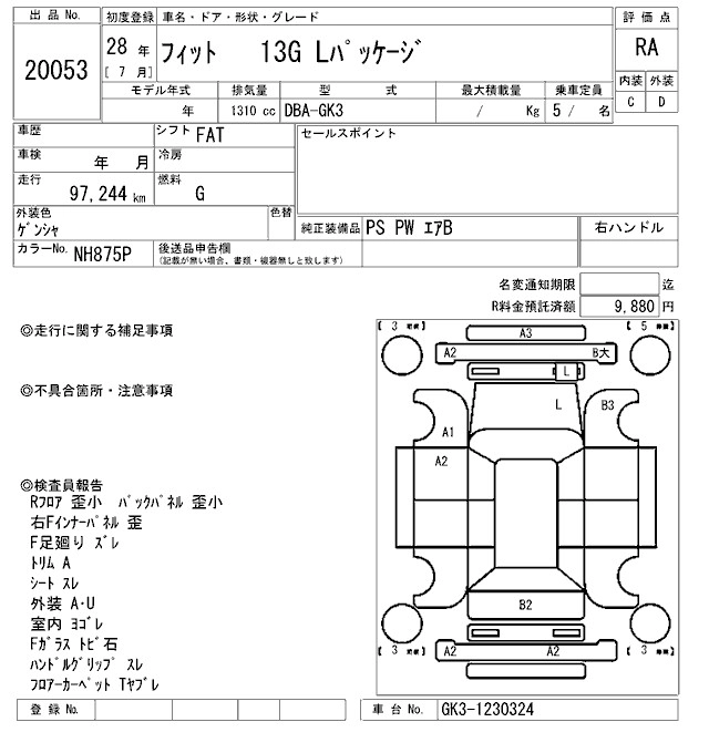 | 13G L PACKAGE FINE EDITION | DBA-GK3 | L13B | FF | CVT | 1317cc | 100ps(73kW)/6000rpm | AИ-92 | 1 598 000 | |