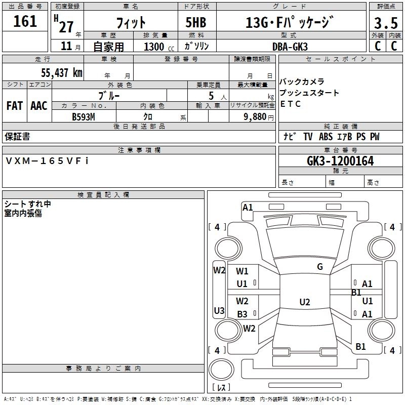 | 13G S PACKAGE | DBA-GK3 | L13B | FF | CVT | 1317cc | 100ps(73kW)/6000rpm | AИ-92 | 1 664 000 | |