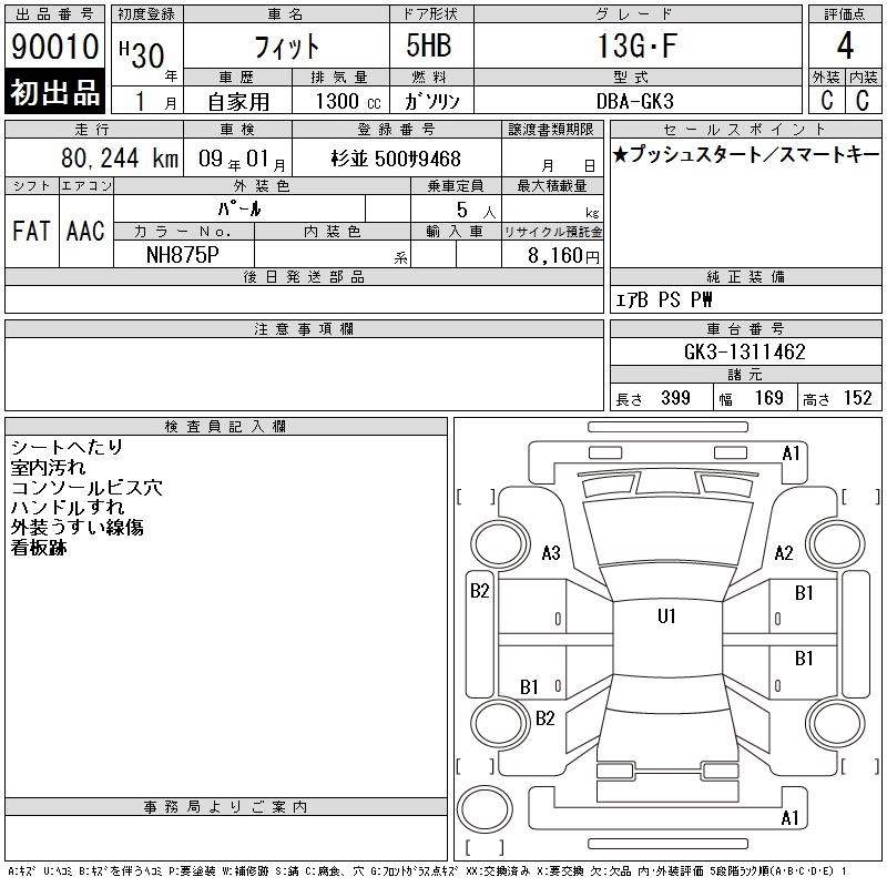 | 13G F | DBA-GK3 | L13B | FF | 5MT | 1317cc | 100ps(73kW)/6000rpm | AИ-92 | 1 428 840 | |