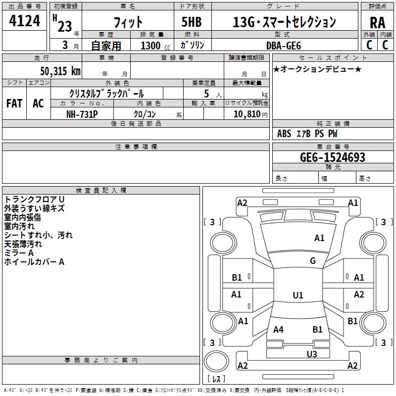 G DBA-GE6 L13A FF 5MT 1339cc 100ps(73kW)/6000rpm AИ-92 1 230 000