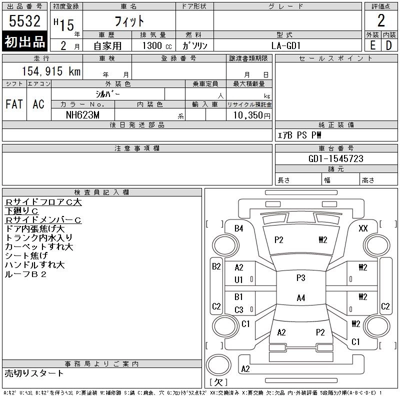| 1.5 NO.1 EDITION | LA-GD3 | L15A | FF | CVT | 1496cc | 110ps(81kW)/5800rpm | AИ-92 | 1 470 000 | |