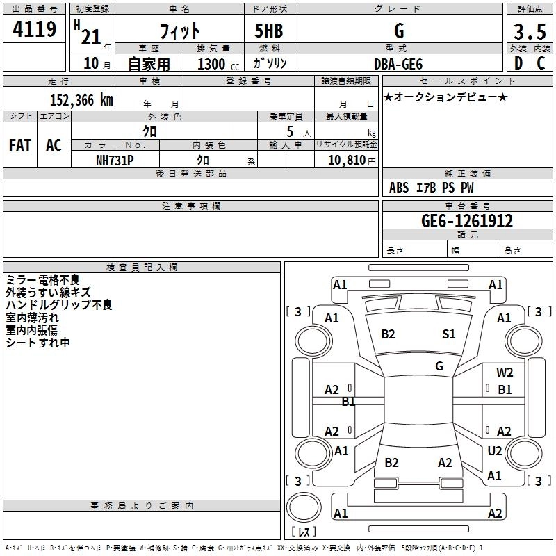 G DBA-GE6 L13A FF 5MT 1339cc 100ps(73kW)/6000rpm AИ-92 1 197 000