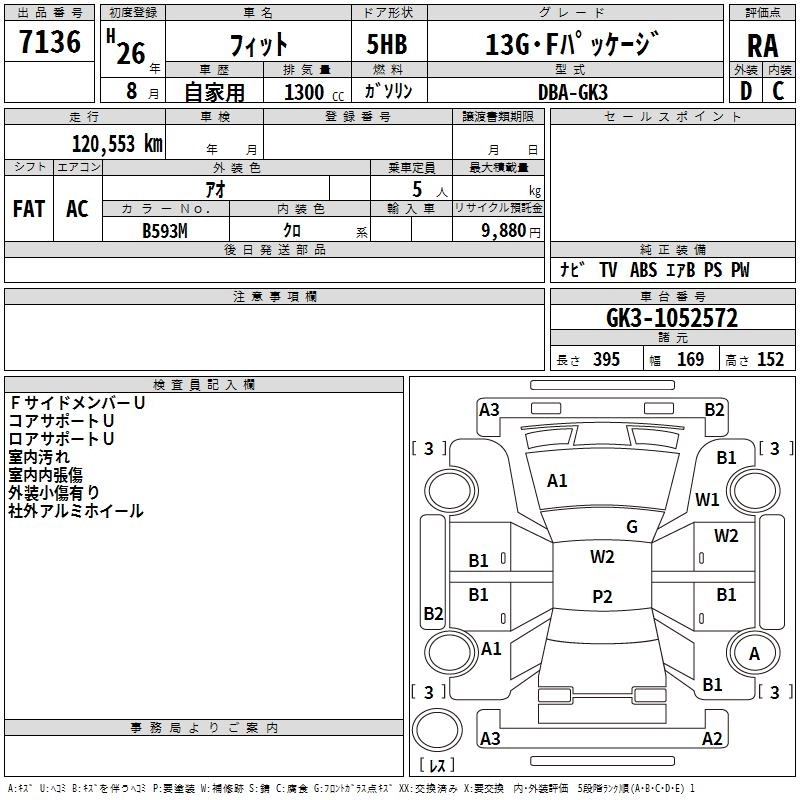 13G F PACKAGE DBA-GK3 L13B FF 5MT 1317cc 100ps(73kW)/6000rpm AИ-92 1 398 858
