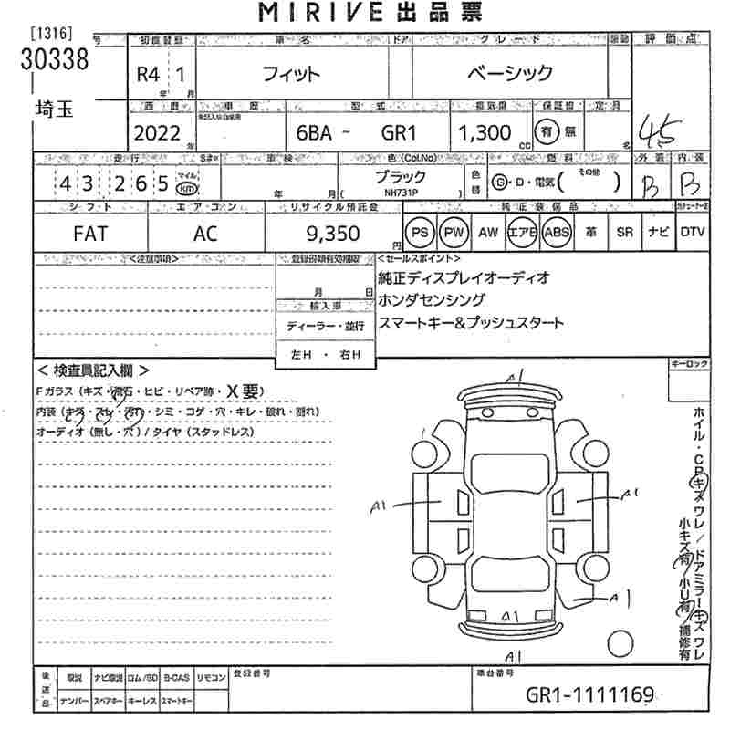 Статус выставлен на аукцион Лот 30338 Аукцион MIRIVE Saitama Дата аукциона 04.02.2026