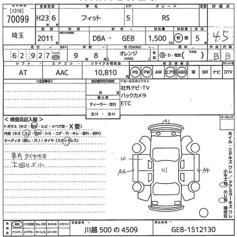 | RS | DBA-GE8 | L15A | FF | 6MT | 1496cc | 120ps(88kW)/6600rpm | AИ-92 | 1 698 000 | |